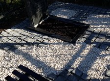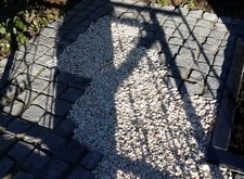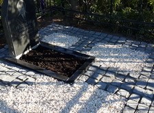 Практически все, что требуется для удовлетворительного внешнего вида – это обустроить пол. Так и в этом заказе. Мы сделали пол, частично из брусчатки, частично из мраморной крошки. Установили металлическую лавочку. Поправили покосившуюся плиту и установили цветник.