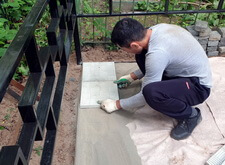 Приехав вновь на кладбище, мы взялись за очистку места захоронения от посторонних элементов: срезали болгаркой старое ограждение; пропололи сорную траву, а также разровняли землю, готовя её к покрытию бетонной плиткой.