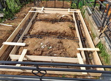 По периметру участка монтируем гранитный цоколь, состоящие из балок секции которого будут разделены невысокими столбиками.