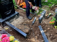 Затем мы вновь вернулись на кладбище: нам предстояло демонтировать основание надгробья, с чем мы и справились на следующем этапе работы.