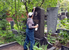 После того, как работы с памятником были окончены, мы протёрли гранитное ограждение защищающей жидкостью. На этом уборку на могиле можно было считать оконченной, окончательно состояние места захоронения после наведения порядка представлено на приведённых ниже фотографиях.